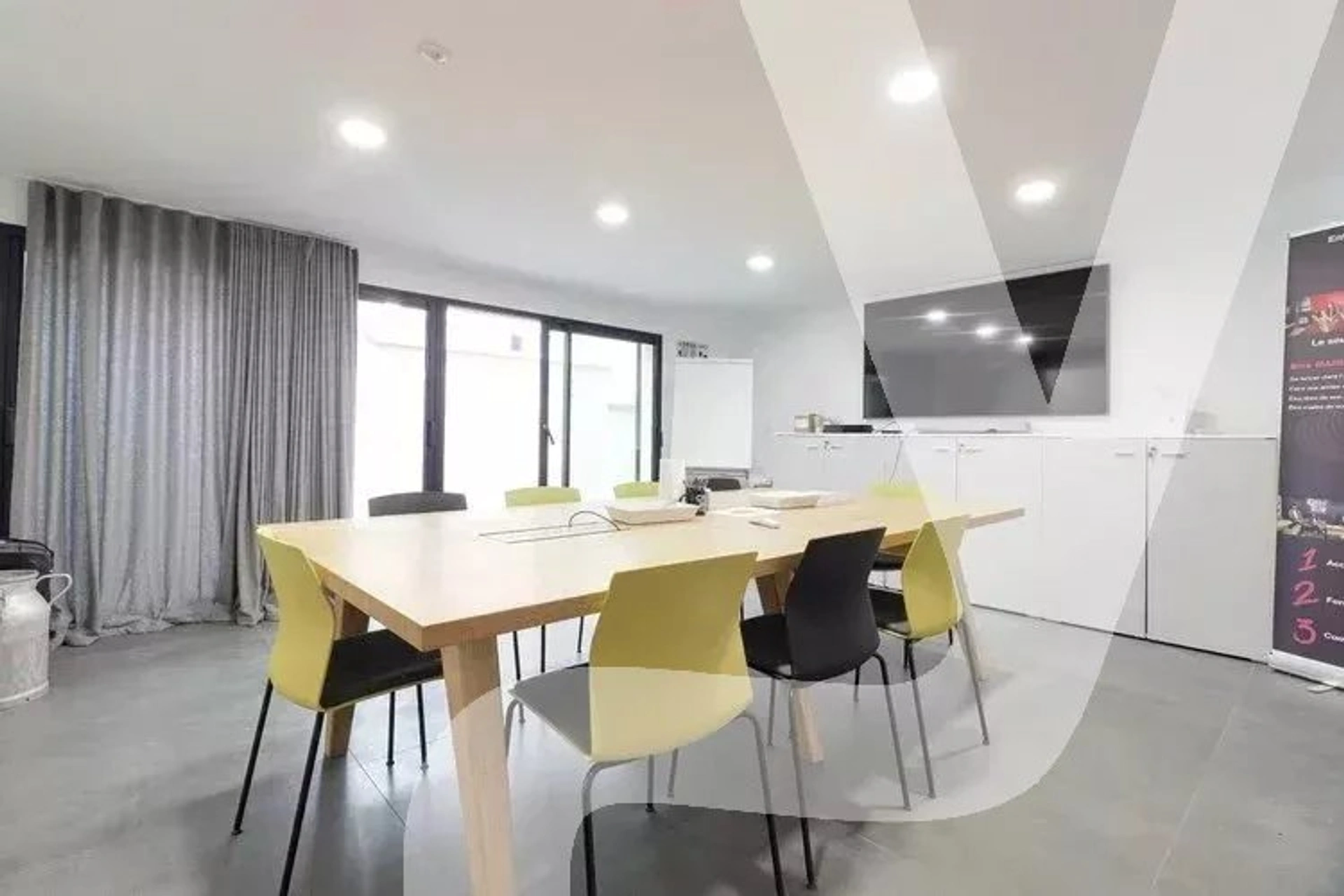 Au 1er étage, un plateau de plus de 80 m² comprenant un open space, une salle de réunion, une cuisine et un WC séparé. Ce niveau ouvre sur une vaste terrasse d’environ 60 m², apportant un véritable confort de travail.
